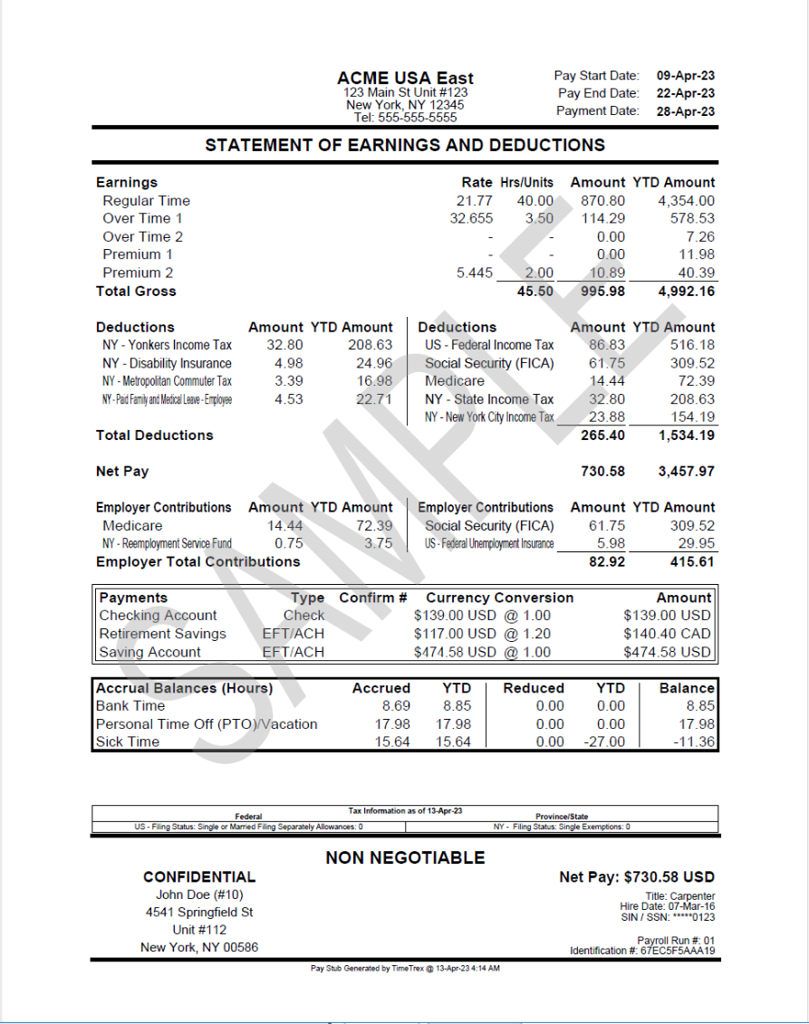 Sample of a pay stub: